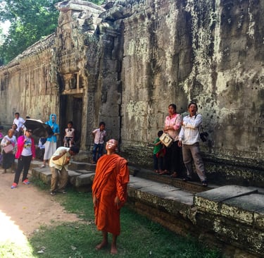 Está considerado como la mayor estructura religiosa jamás construida y uno de los tesoros arqueológicos más importantes del mundo. Caminar entre sus templos interconectados es caminar por la historia y por la espiritualidad hindú. Ver cómo los árboles han invadido algunas estructuras y encontrarte de pronto con algún monje budista deambulando en silencio, como si siempre hubiera estado ahí, es parte natural de la experiencia.