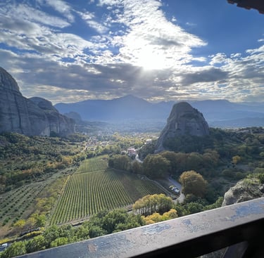 Durante un viaje a Atenas con mi hermana, Meteora era uno de esos lugares que no quería dejar pasar. Está ubicado a unos 350 kilómetros de la capital y el trayecto vale totalmente la pena.