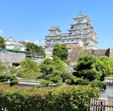 Antes de llegar a Hiroshima desde Osaka, mi hermana, mi sobrina y yo, hicimos una parada en Himeji. El castillo, conocido como el Castillo de la Garza Blanca, se eleva rodeado por un amplio foso de agua y es visible desde distintos puntos de la ciudad.